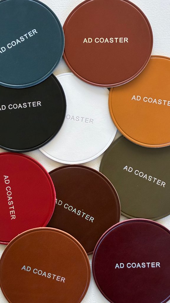 Driven by a passion for excellence and the timeless codes of the luxury industry, the idea of creating leather coasters was born from a hospitality standard that states: “All drinks are served on distinctive coasters.” From this principle, we have reimagined the coaster, made in France, as an object of elegance, personalization, and durability — designed for every occasion.